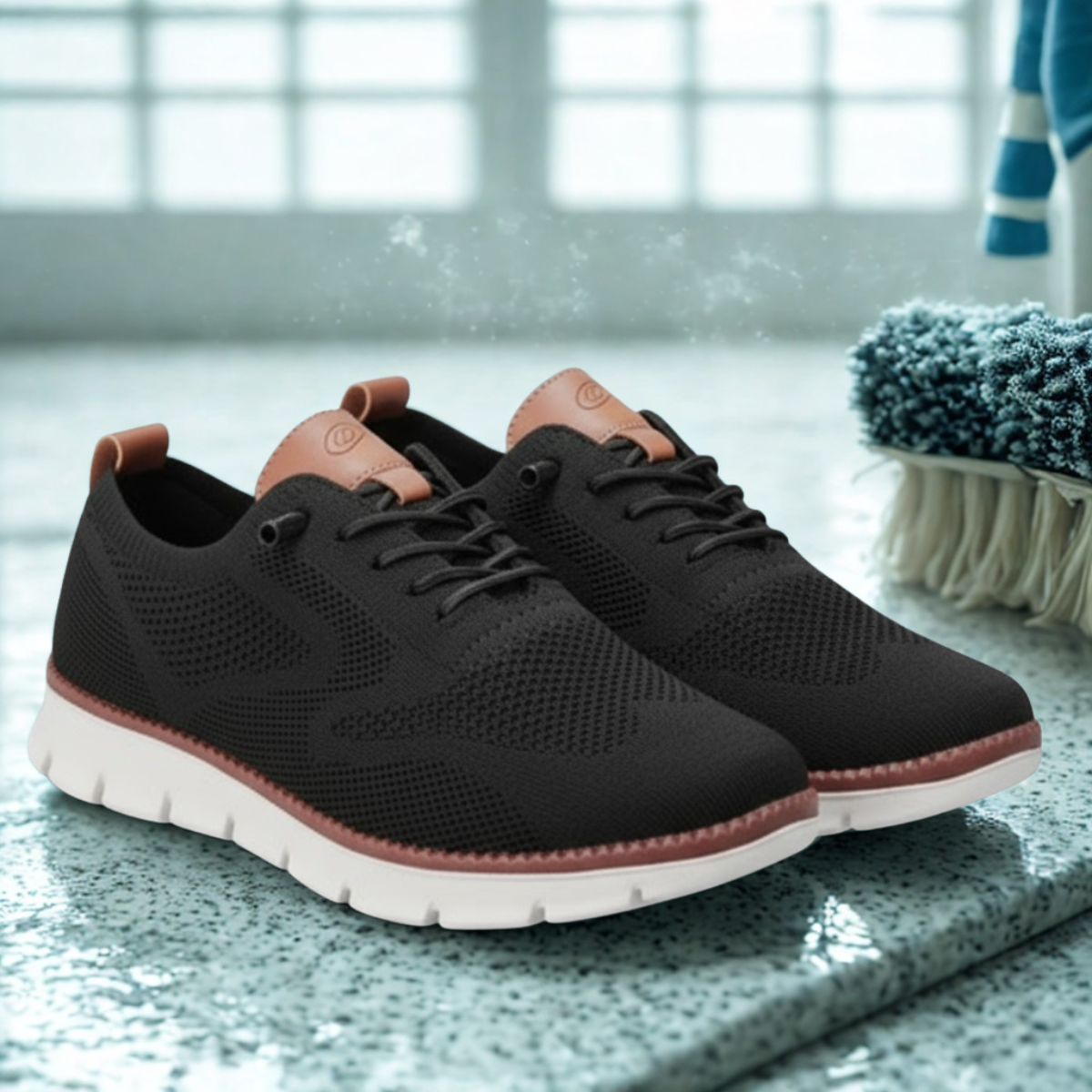 Comfofeet Footwear shoes are made from lightweight, breathable synthetic material. Cleaning them is as easy as wiping them down with a damp cloth. For tougher stains like mud and dirt, ComfoFeet Footwear shoes are machine-washable!