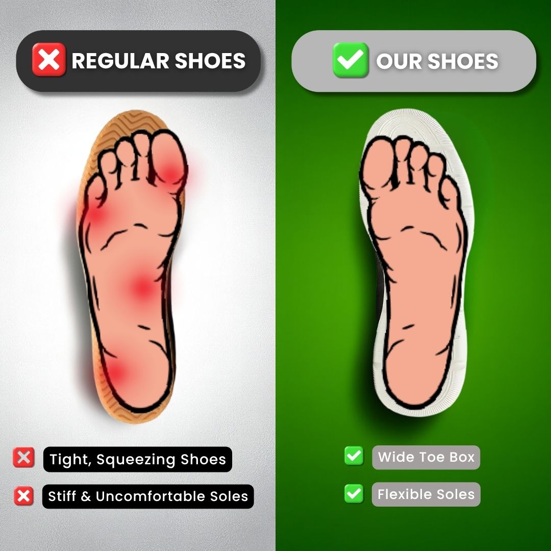 Our shoes are specifically crafted to alleviate foot pain, promote proper alignment, and provide the cushioning your feet deserve. While others might prioritize style over substance, ComfoFeet ensures you don't have to choose. With our shoes, you get the perfect blend of comfort, support, and style—keeping your feet happy and healthy every step of the way.