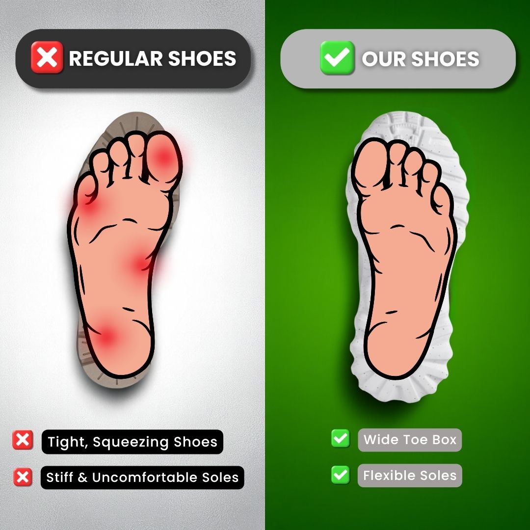 ✓ Stimulate Blood Circulation - Our shoes are designed to enhance blood circulation, helping to reduce neuropathy symptoms and fatigue. The optimal footbed ensures proper alignment, promoting overall foot health.